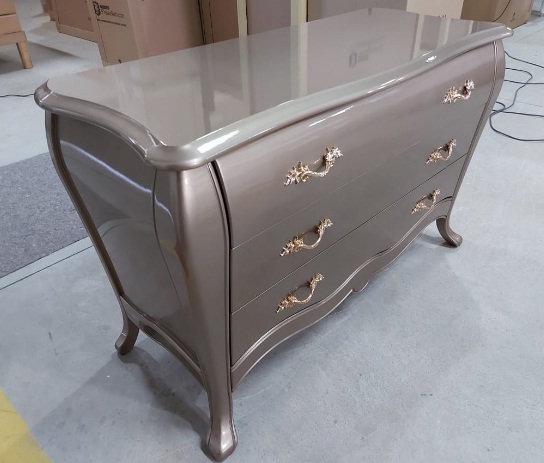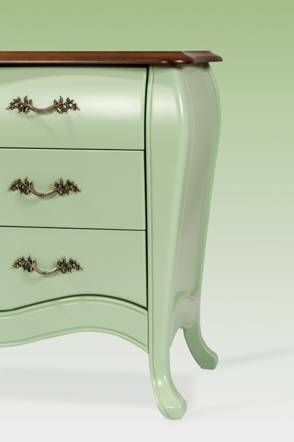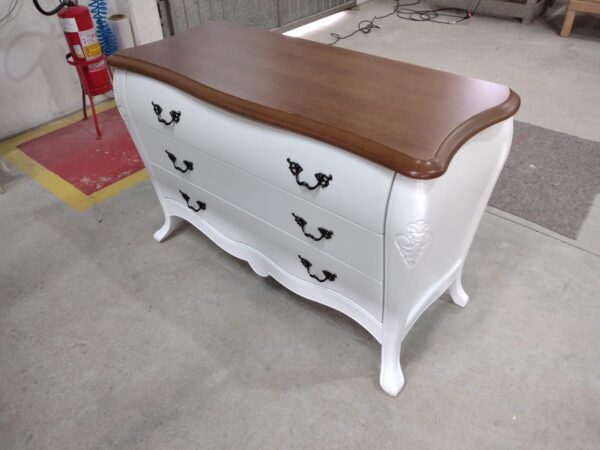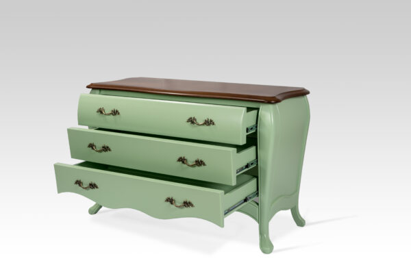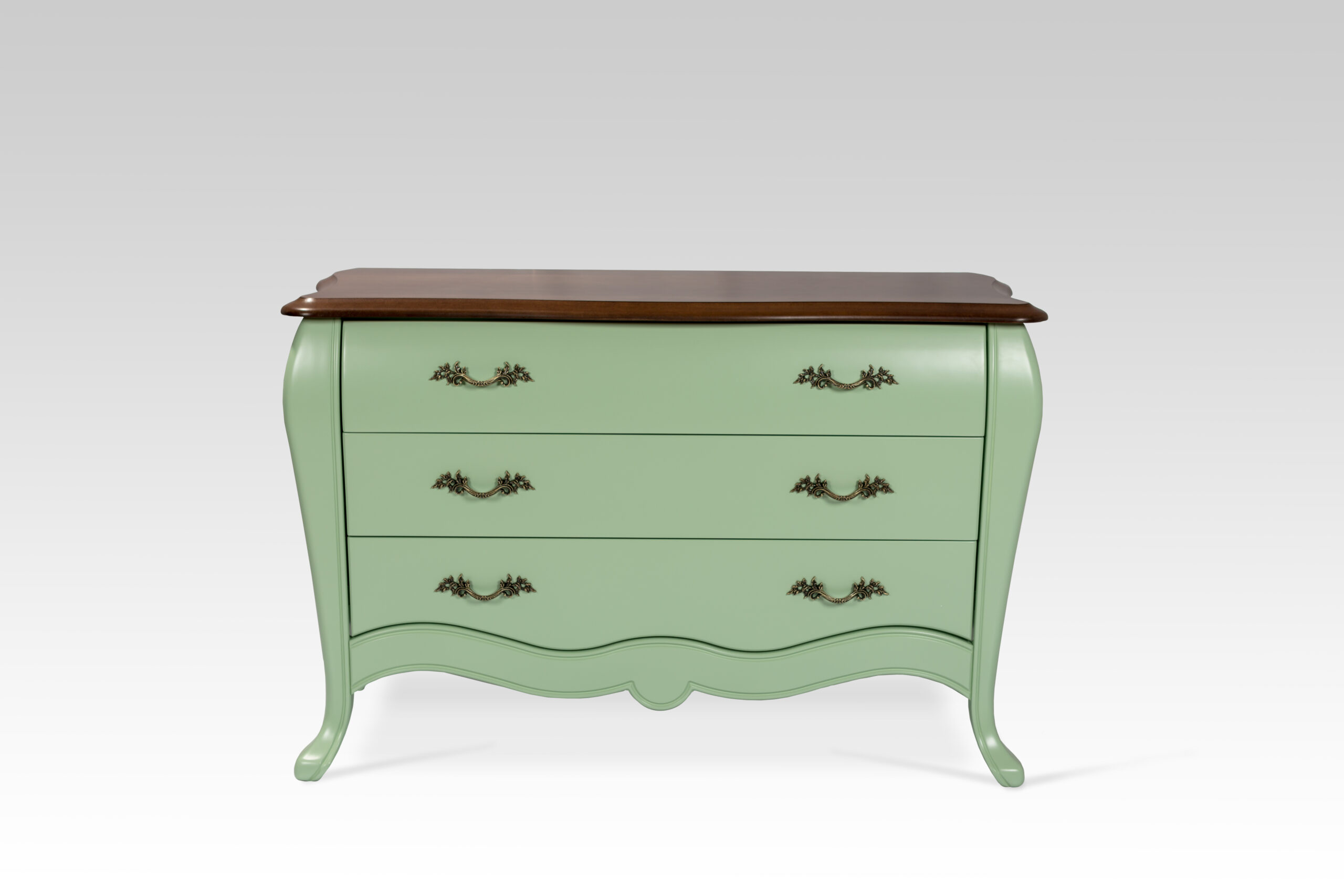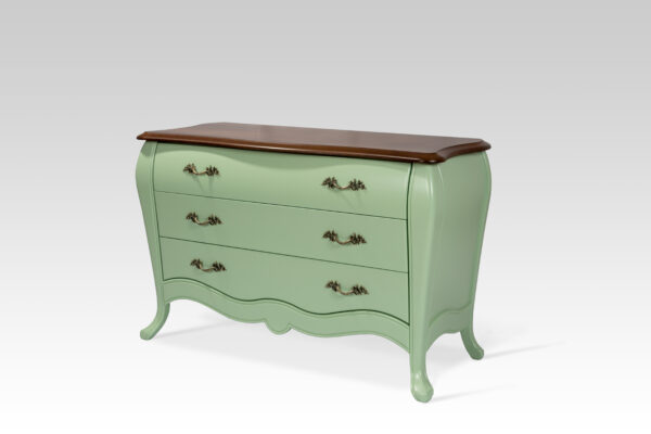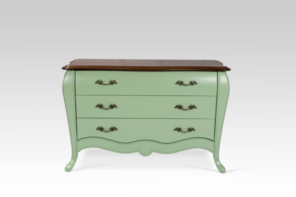 A cômoda bombê é caracterizada pelo material e pelas formas curvilíneas, que tomam conta das extremidades, dos pés e das gavetas, que, inclusive, sempre possuem puxadores. É aquele tipo de móvel que você já viu pelo menos uma vez na vida, mas não sabia que tinha um nome. Pode ter acabamento laqueado, com ares mais modernos, ou mais rústico, até mesmo com a tinta descascada.