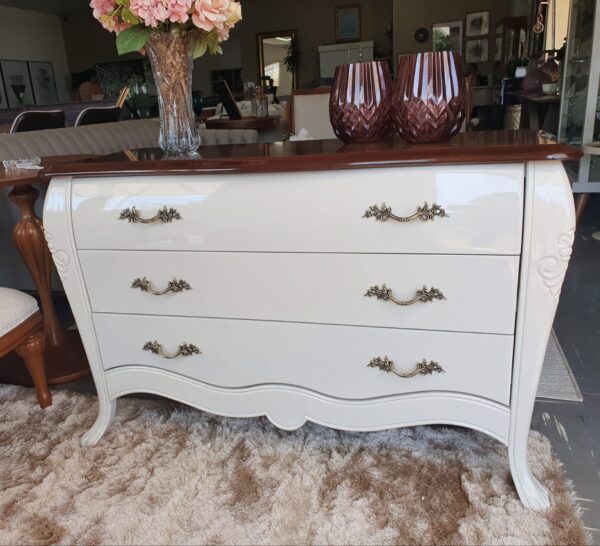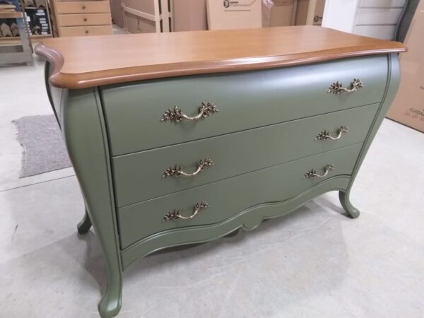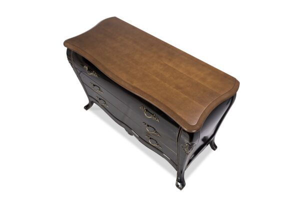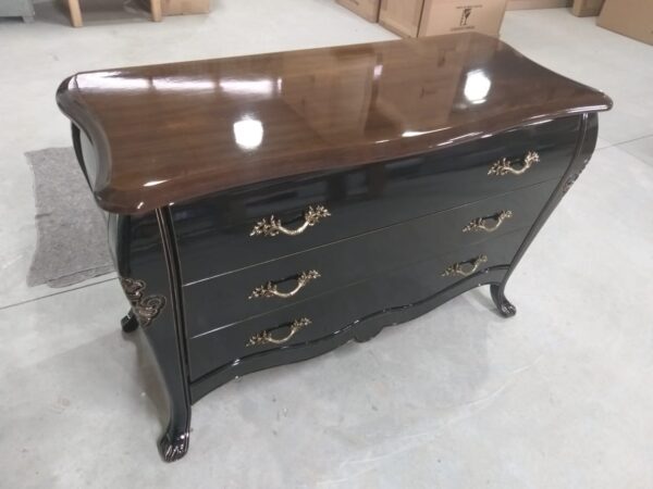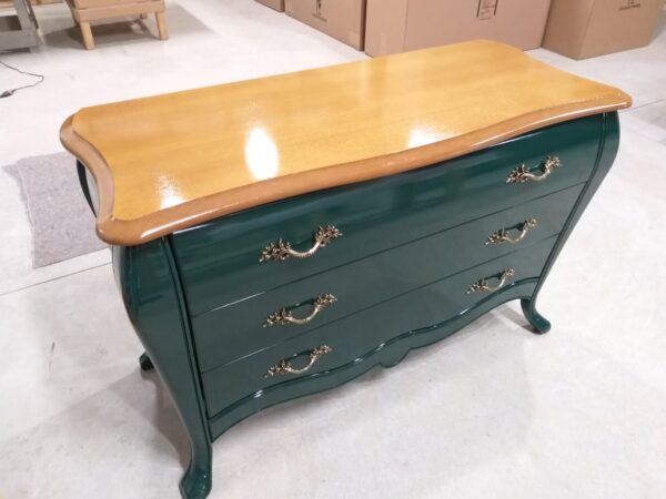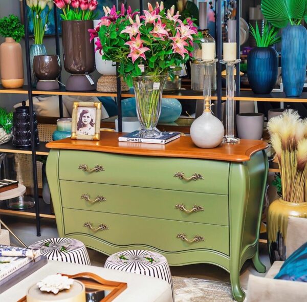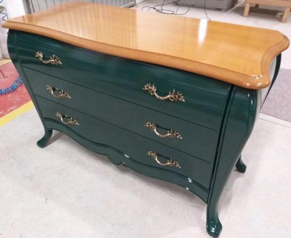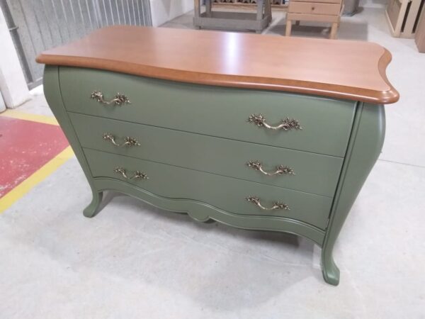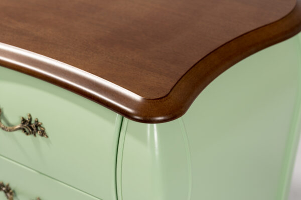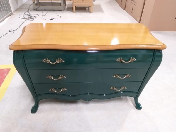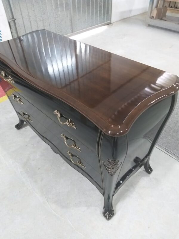 A cômoda bombê é caracterizada pelo material e pelas formas curvilíneas, que tomam conta das extremidades, dos pés e das gavetas, que, inclusive, sempre possuem puxadores. É aquele tipo de móvel que você já viu pelo menos uma vez na vida, mas não sabia que tinha um nome. Pode ter acabamento laqueado, com ares mais modernos, ou mais rústico, até mesmo com a tinta descascada.