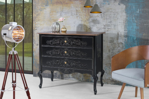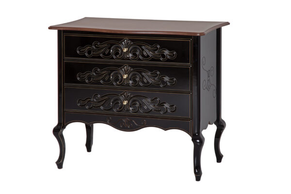 Estilo clássico e design que denotam autenticidade ao ambiente. A Cômoda Viena 3 gavetas entalhada oferece a união da beleza e funcionalidade. Com entalhes que conferem beleza e um diferencial impar na sua decoração. Com inúmeras opções de cores, os entalhes podem receber aquela personalização que a imaginação requerer, com apliques de cores ou ainda folha ouro.